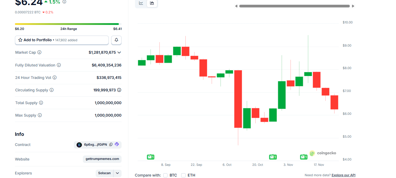 To put it in numbers, TRUMP, the most valuable meme coin on Solana, is down nearly -9% in the last week. It tumbled from as high as $74.