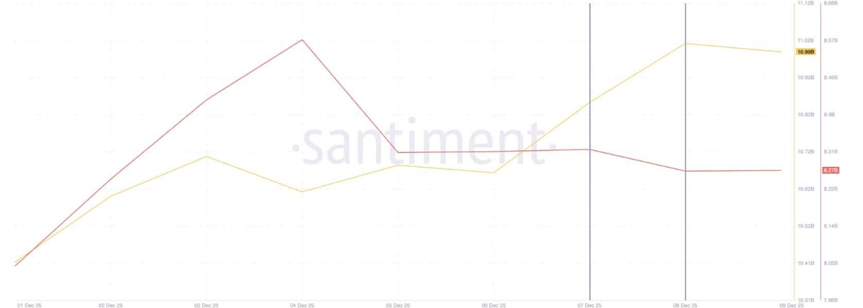 Santiment data shows that wallets holding between 100M and 1Bn XRP have sold close to $600M worth of tokens since December 5.