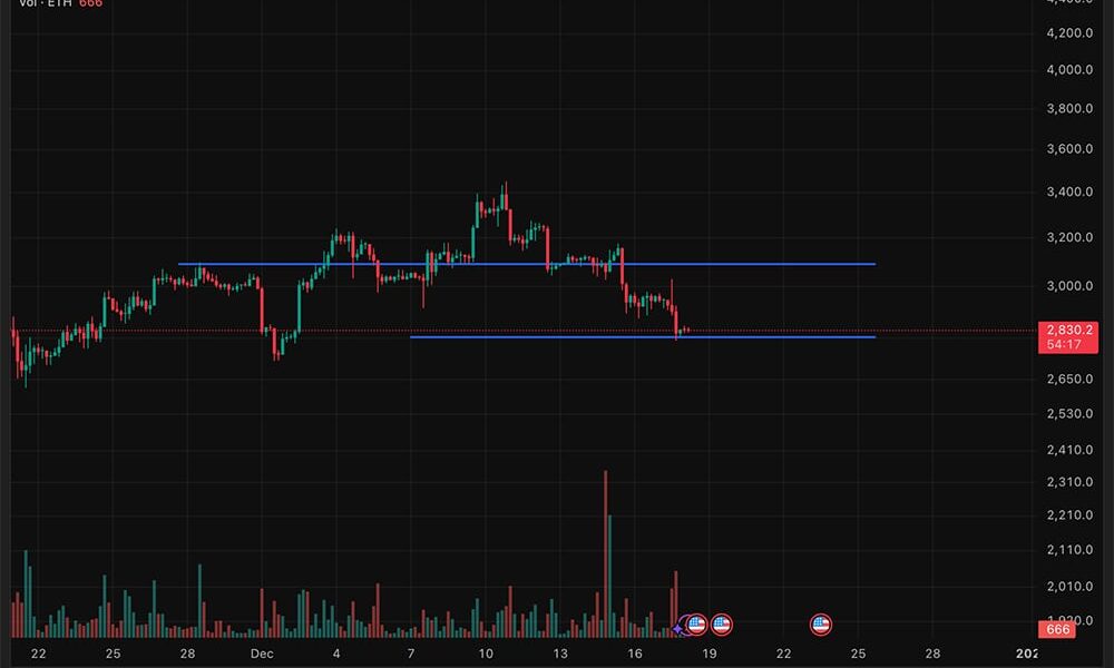 Ethereum, on the other hand, dropped by 4% in price last night, briefly touching lows under $2,800 before closing indecisively. Strong bids around $2,800 are still offering short-term support, but resistance between $3,000 and $3,100 remains a big problem.