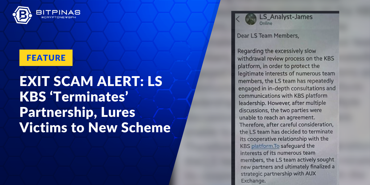 Following weeks of frozen withdrawals and strict “recruit-to-withdraw” mandates, the LS Team, which is the marketing group behind the unlicensed KBS Exchange, has announced it is terminating its partnership with the platform, effectively leaving thousands of Filipino investors unable to access their funds.