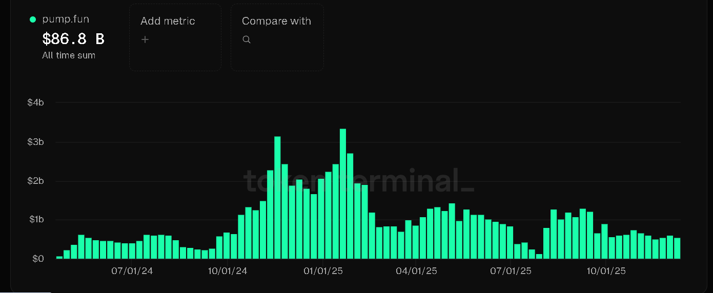 (Source – Pump.Fun Volumes, Token Terminal)