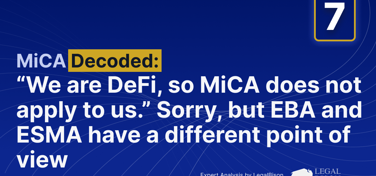 MiCA Decoded is a 12-article weekly series for Bitcoin.com News, co-authored by LegalBison’s Co-Founding and Managing Directors: Aaron Glauberman, Viktor Juskin and Sabir Alijev. LegalBison advises crypto and FinTech companies on MiCA licensing, CASP and VASP applications, and regulatory structuring across Europe and beyond.