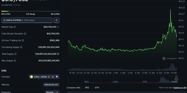 Wiki Cat (WKC) has been purring loudly on the charts this week, leaving the broader market in the dust. The BNB Chain meme coin has surged by +40% over the last seven days, capturing the attention of retail traders. However,…